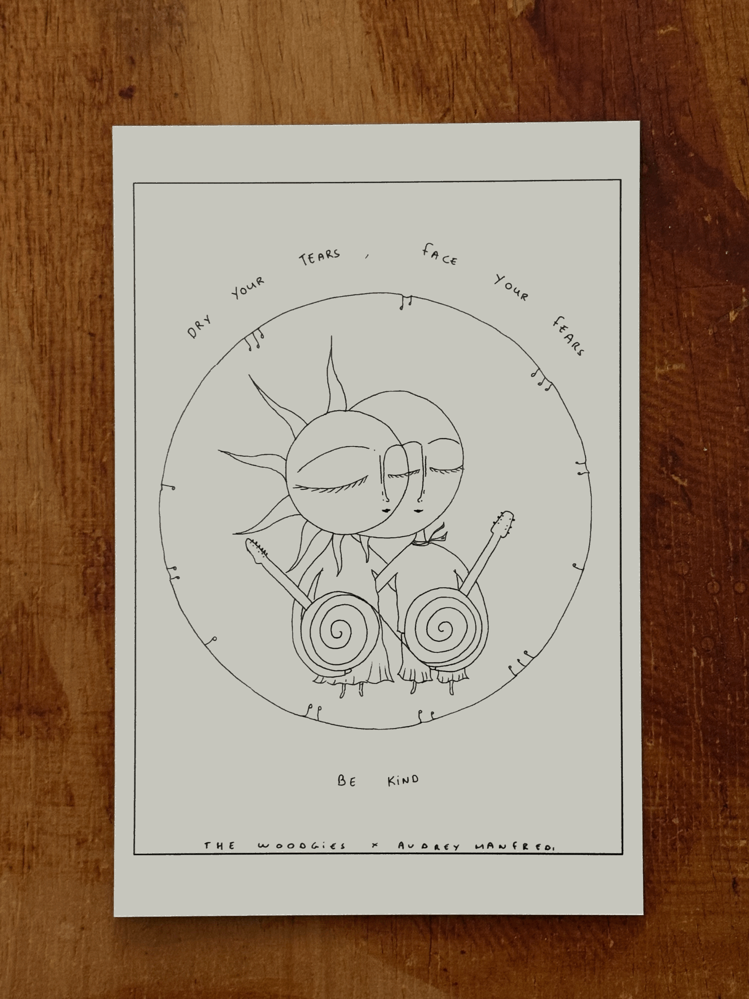 STORE Postcards - The Woodgies x Audrey Manfredi - Dry your tears, face your fears, be kind CHF 5.50 Postcards - The Woodgies x Audrey Manfredi - The sun will shine another day CHF 5.50 Postcards - The Woodgies x Audrey Manfredi - You are my ray of sunshine CHF 5.50 Flowerless X The Woodgies Earrings Green CHF 36.00 Flowerless X The Woodgies Earrings White CHF 36.00 THE WOODGIES' EXCLUSIVE SWEATER CHF 50.00 Holding Hands CD - The Woodgies CHF 15.00
